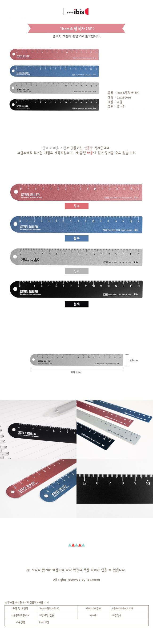 | 품명 및 모델명 | 칼라 스틸직자16cm |