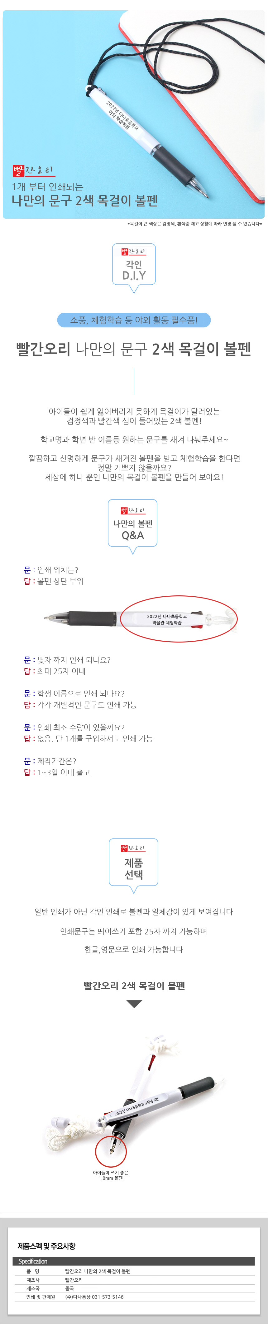 | 품명 및 모델명 | 빨간오리 나만의 2색 볼펜 |