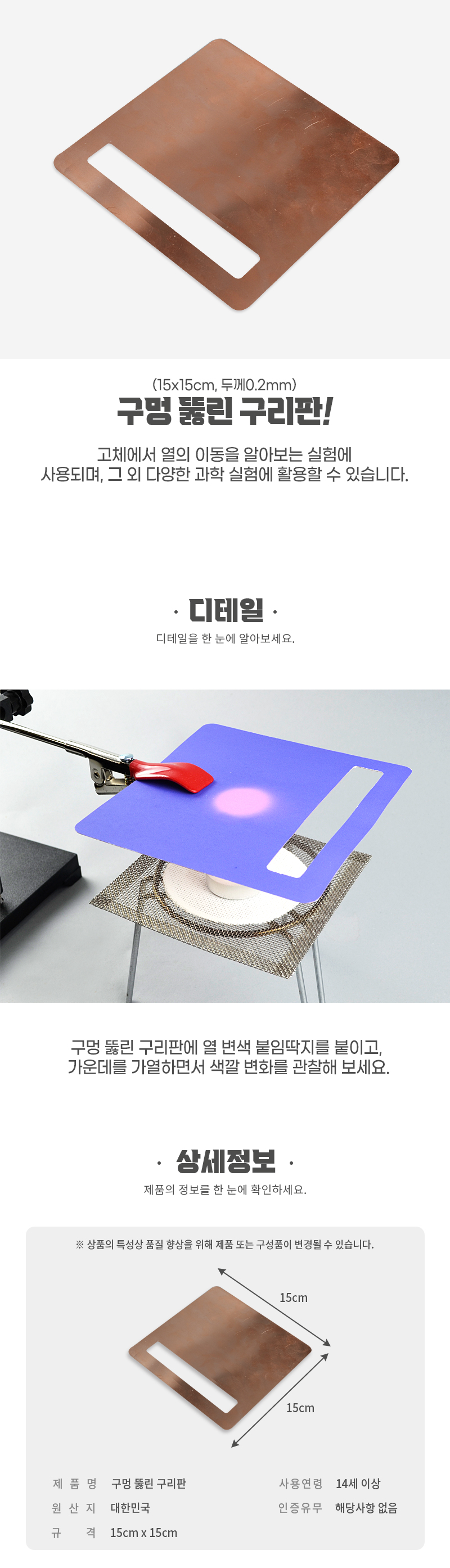 | 품명 및 모델명 | [와니사이언스]구멍 뚫린 구리판(15*15, 두께0.2mm)(천재) |