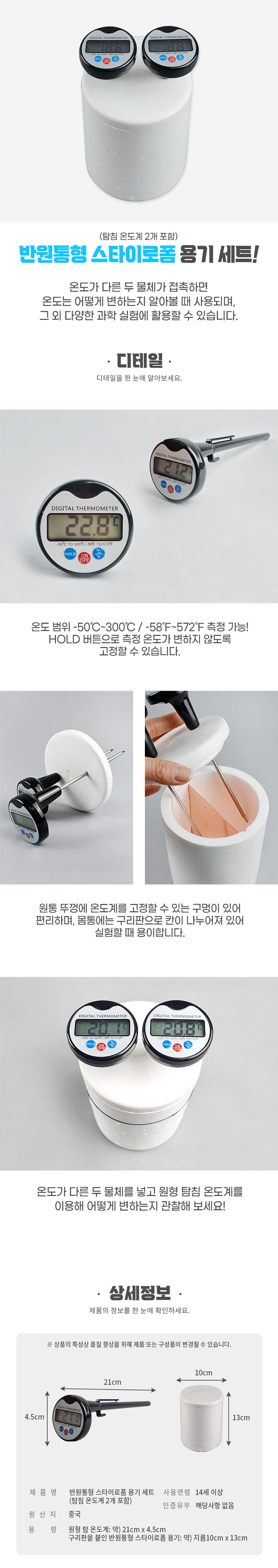 | 품명 및 모델명 | [와니사이언스]반원통형 스타이로폼 용기 세트(탐침 온도계 2개 포함)(지학사) |