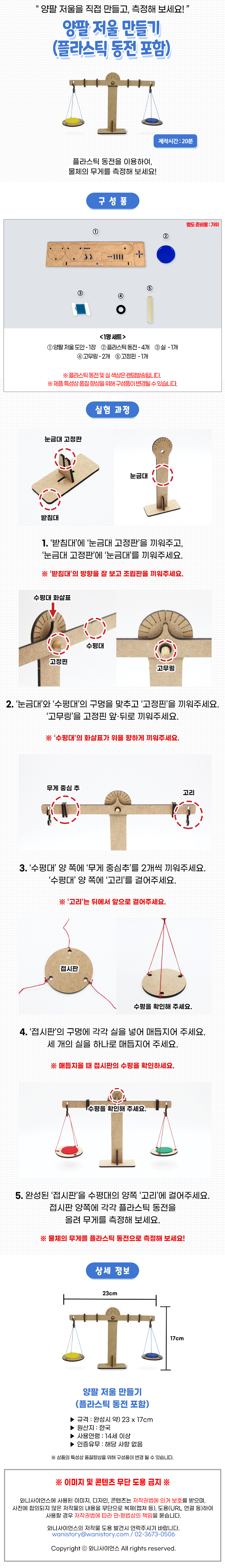 | 품명 및 모델명 | [와니사이언스]양팔 저울 만들기(1명 세트)(플라스틱 동전 포함) |