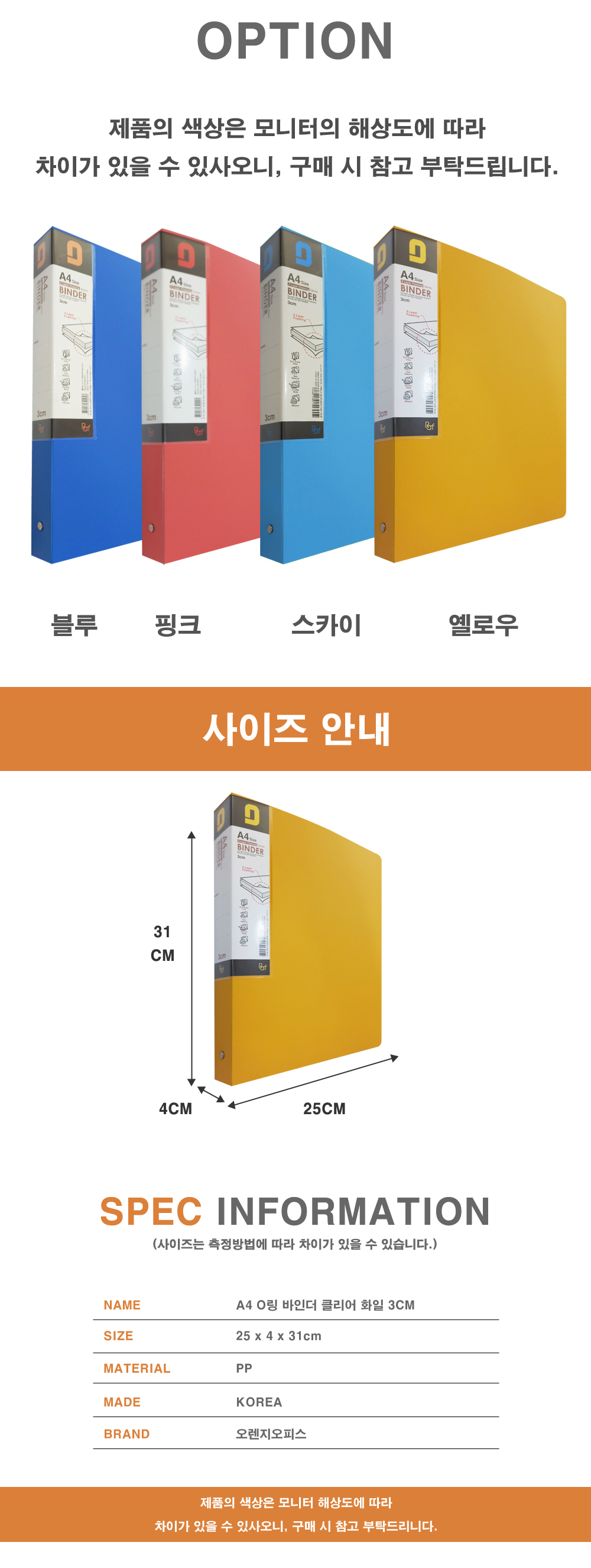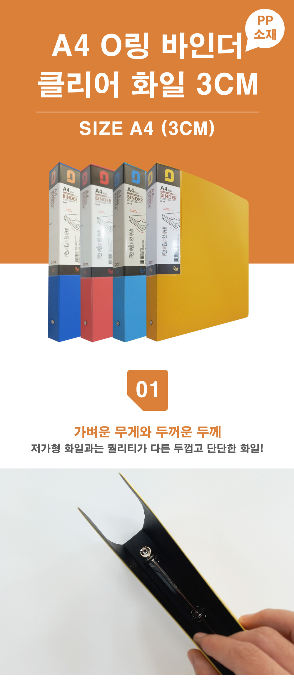 | 품명 및 모델명 | A4 플라스틱 장식보다 튼튼한 3공 O링 바인더 클리어화일 3CM |