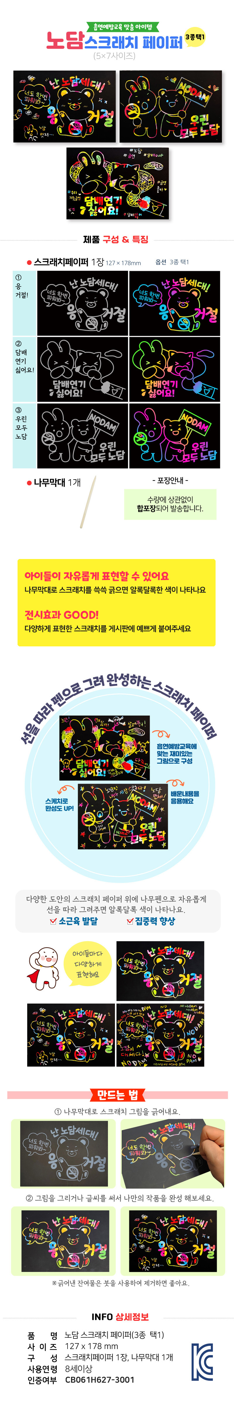 | 재질 (섬유의 경우 혼용률) | 스크래치페이퍼,나무막대 |