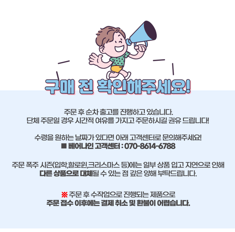 | 제조연월일, 소비기한 또는 품질유지기한 | 재고가 수시로 변동되어 정확한 제조년월일과 유통기한 또는 품질유지기한의 정보를 제공하기 어려울 수 있습니다. 상세페이지를 참고하시거나, 소비자상담연락처로 문의 시 안내드리겠습니다. |