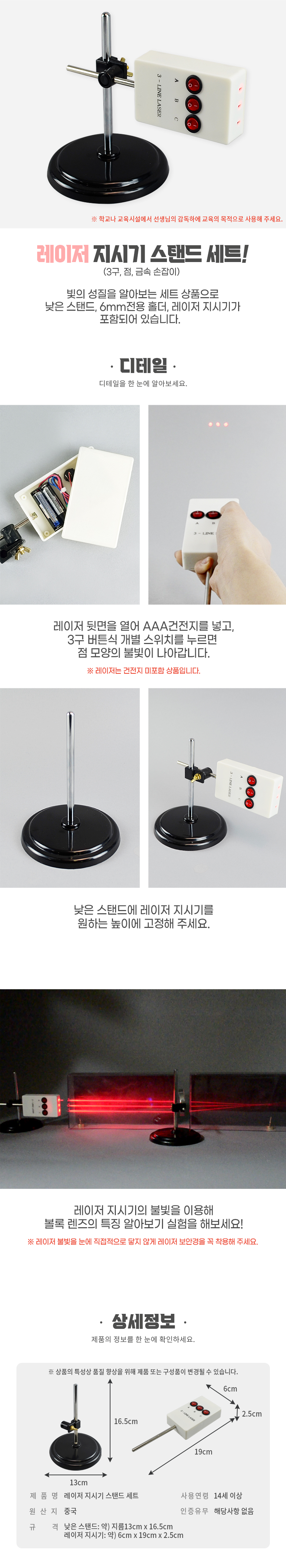 | 품명 및 모델명 | [와니사이언스] 레이저 지시기 스탠드 세트(3구, 점, 금속손잡이)(지학사) |